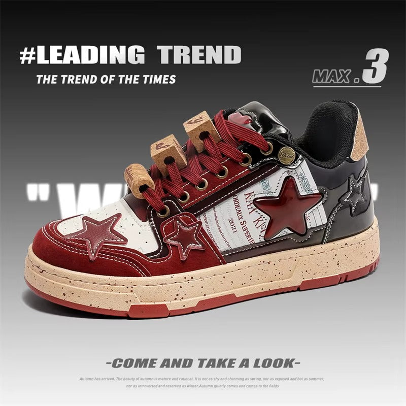 Step into bold streetwear style with the Morrocci™ Star Designer Men’s Sneakers, crafted for everyday comfort and standout fashion. Inspired by urban skate culture, these sneakers feature a patchwork upper design made from durable artificial leather with breathable mesh lining.